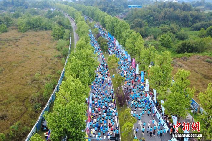 图为选脚从起始动身。(无人机相片)中新社记者 肖江川 摄